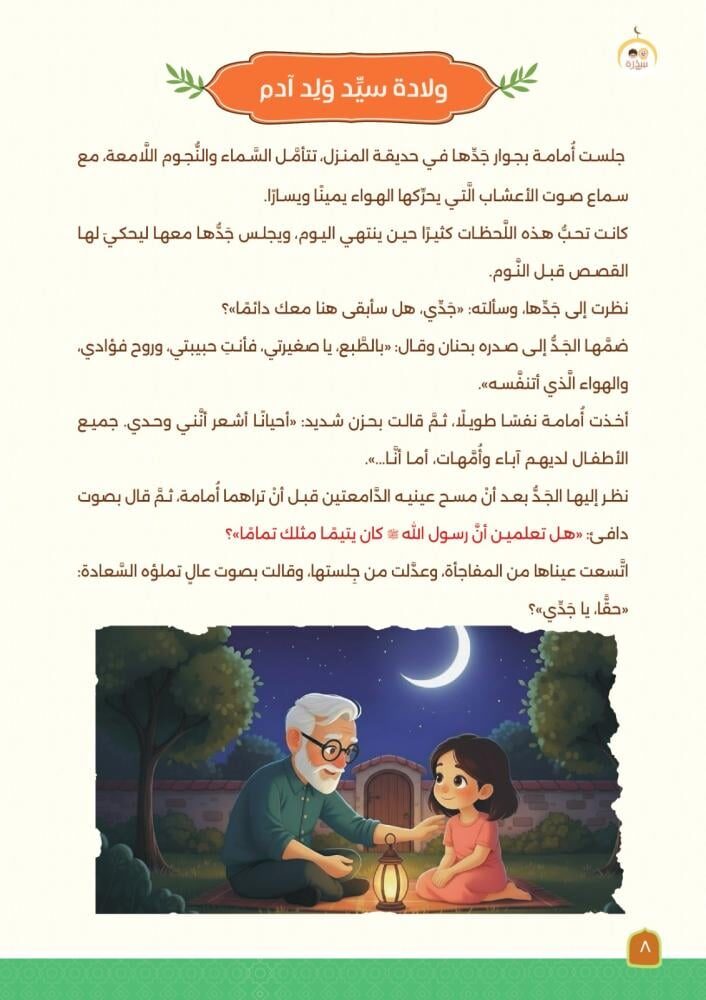 ربط واقعي بالطفل: يسرد أحداث السيرة بأسلوب قصصي يربطها بمواقف قريبة من يوم الطفل وحياته المعاصرة.