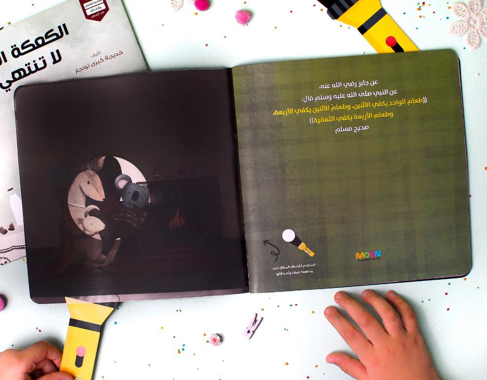 قصة “الكعكة التي لا تنتهي” – حين يبارك الله في القليل! مغامرة تربوية فريدة تعلم الأطفال (5-10 سنوات) لذة العطاء وبركة شكر الله على نعمه. تتميز القصة بنشاط “اكتشف في الظلام” المرفق مع كشاف ورقي، ليتحول الكتاب إلى ساحة لعب واستكشاف تملأ قلوب أطفالكم بالبهجة واليقين.