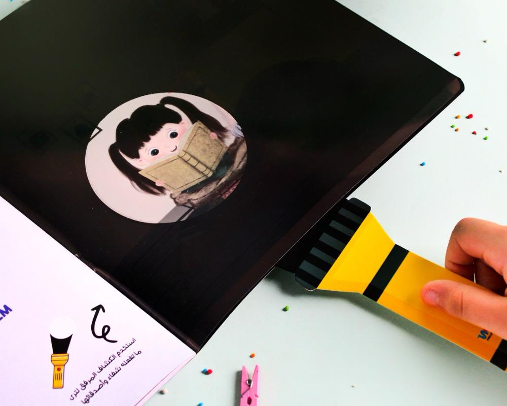 نشاط “اكتشف في الظلام” المبتكر: القصة ليست للقراءة فقط! يأتي معها كشاف ورقي خاص يُستخدم لاستكشاف الرسوم والبحث عن التفاصيل في الظلام، مما يحول وقت القراءة إلى مغامرة تشويقية مذهلة.