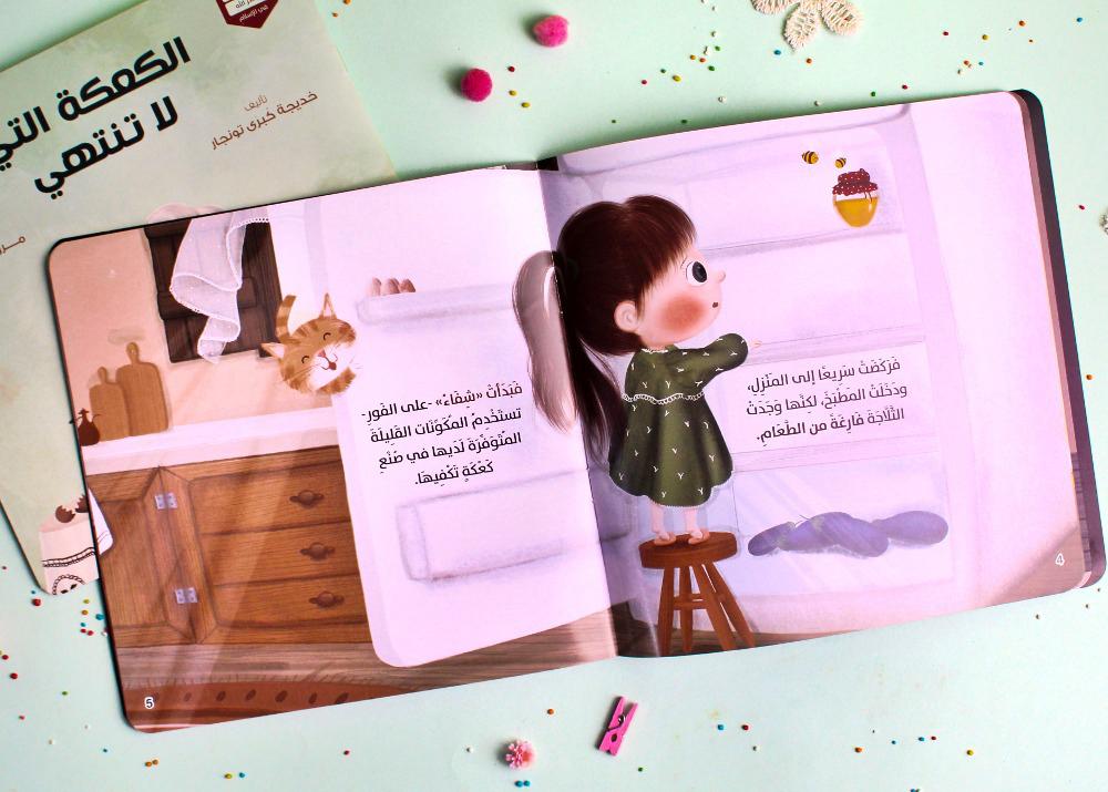 يا تُرى ماذا ستفعل “شفاء” بطلة قصتنا بعد أن سمحت للنعامة بالدخول؟ الكعكة مقسمة لأربع شرائح صغيرة فقط، والجميع ينظر إلى الباب بقلق!. قصة “الكعكة التي لا تنتهي” هي رحلة ممتعة تعلم أطفالنا بأسلوب غير مباشر أن البركة تحل حين نتشارك ما نملك مع الآخرين.